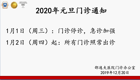 2020年元旦门诊通知