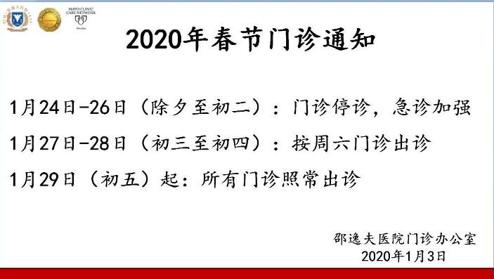2020年春节门诊通知