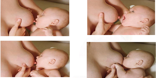 1、保持正确体位:纠正母亲的抱奶体位及婴儿的含接姿势