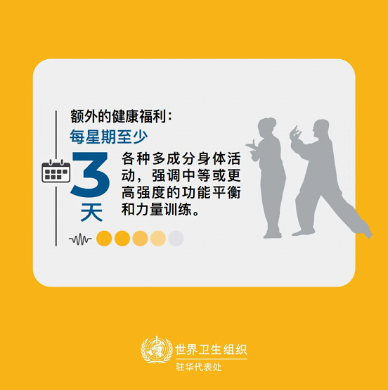 世卫组织建议老年人少久坐,多活动。