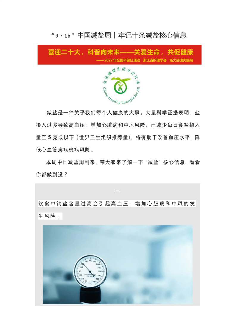 中国减盐周丨牢记十条减盐核心信息