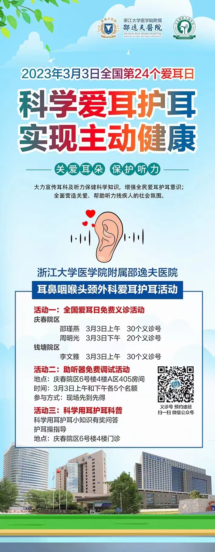 收看爱耳日健康科普请关注“浙大邵逸夫医院”微信视频号