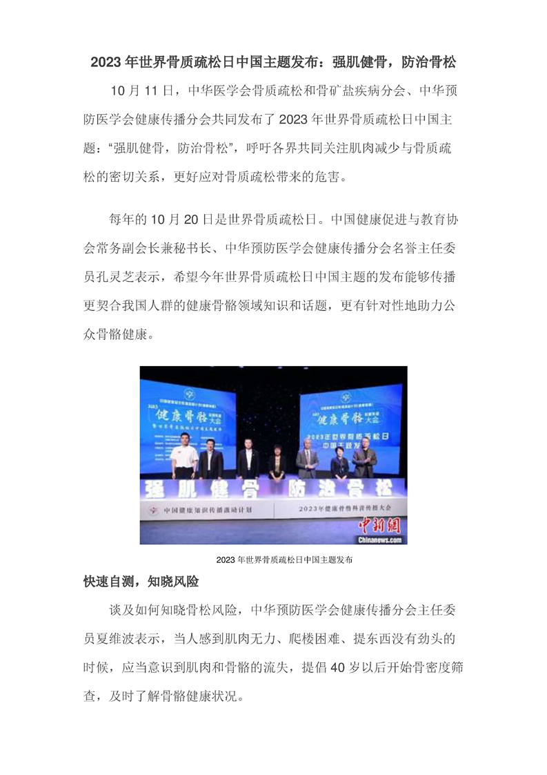 2023年世界骨质疏松日中国主题发布:强肌健骨 防治骨松