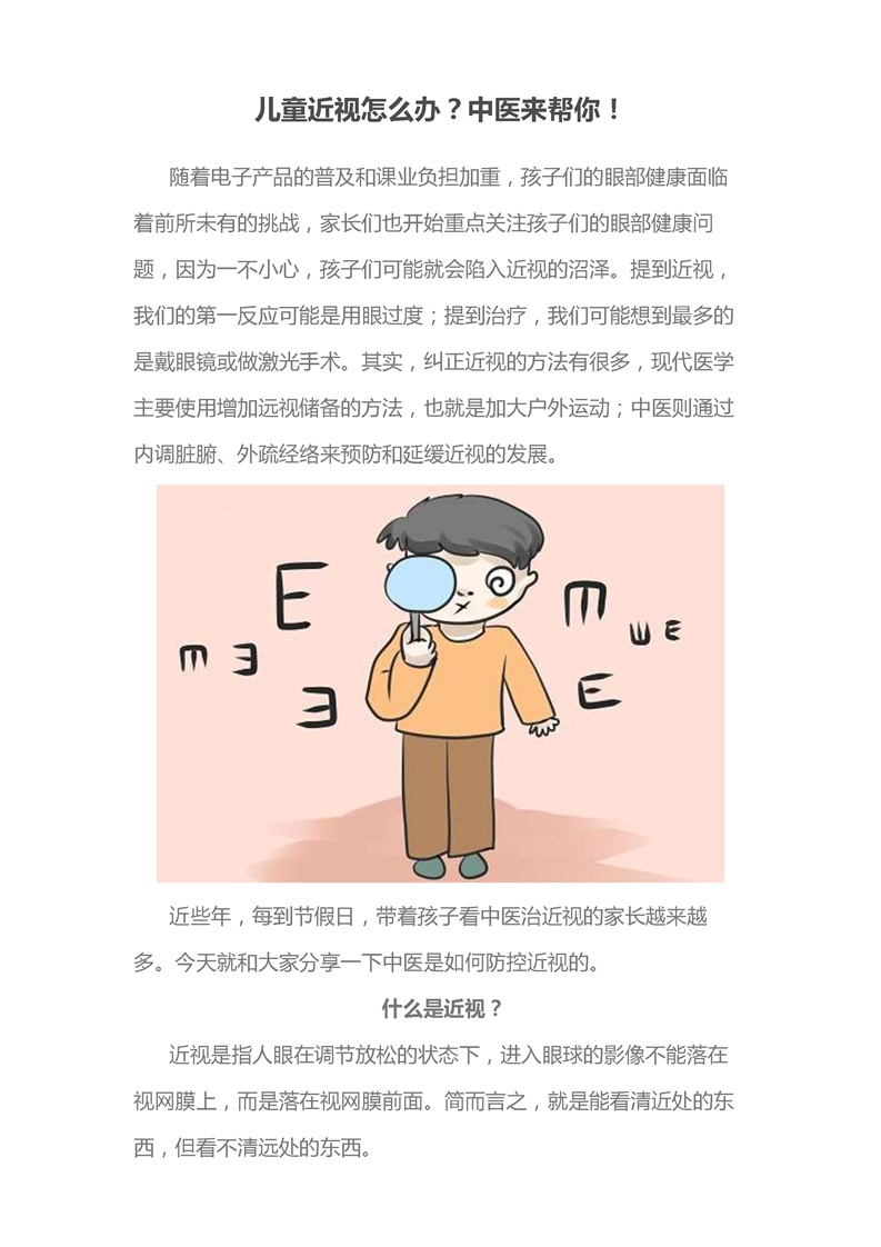 儿童近视怎么办?中医来帮你!