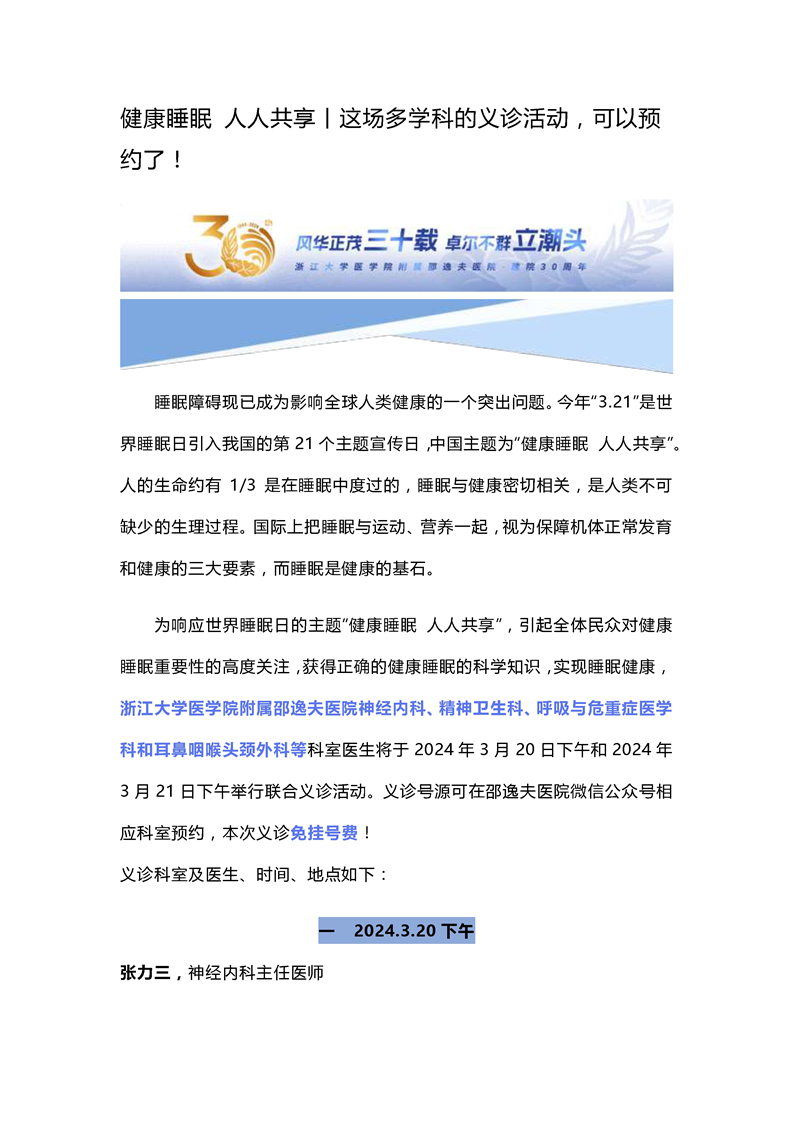 健康睡眠 人人共享丨这场多学科的义诊活动,可以预了!
