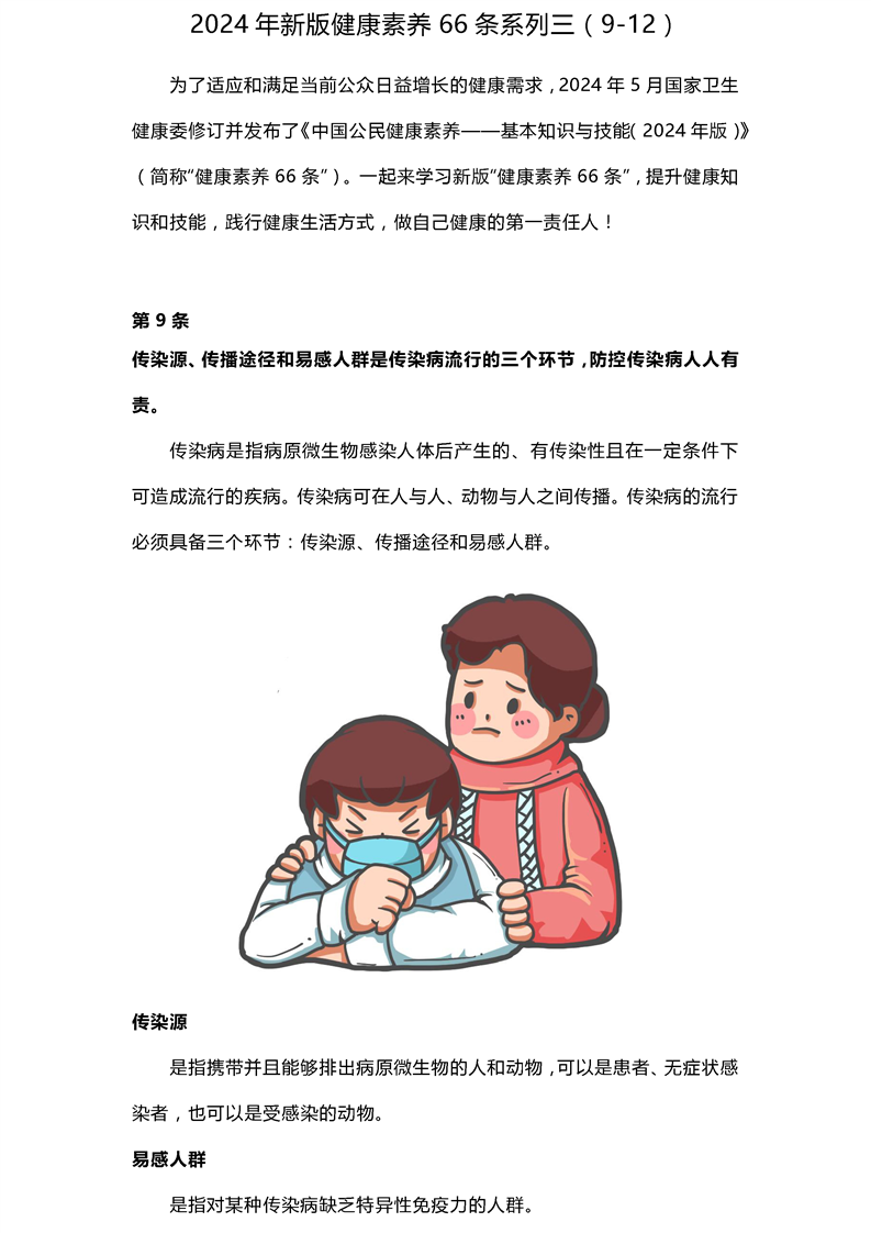 2024年新版健康素养66条系列三(9-12)