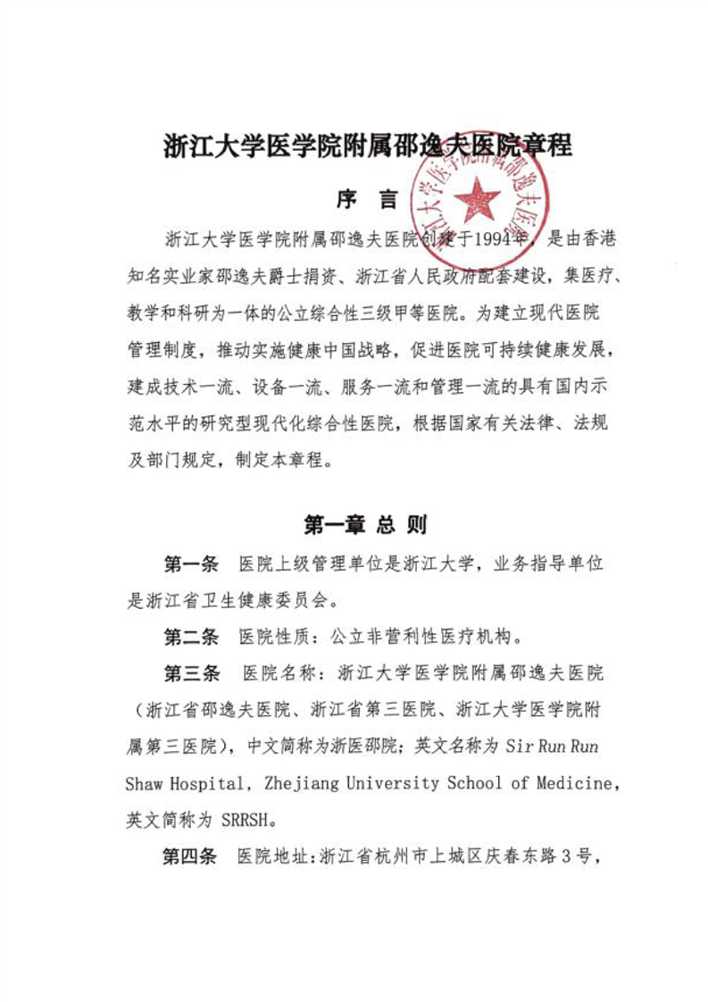 浙江大学医学院附属邵逸夫医院章程