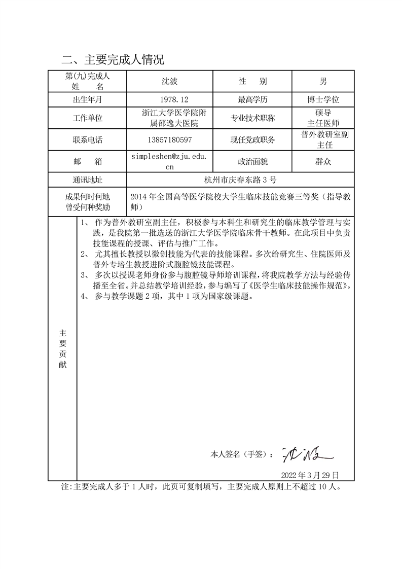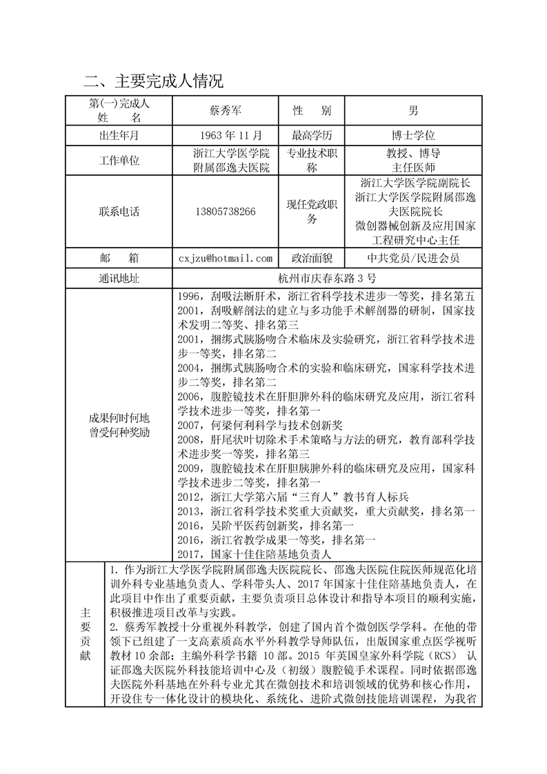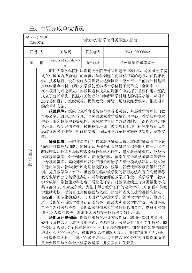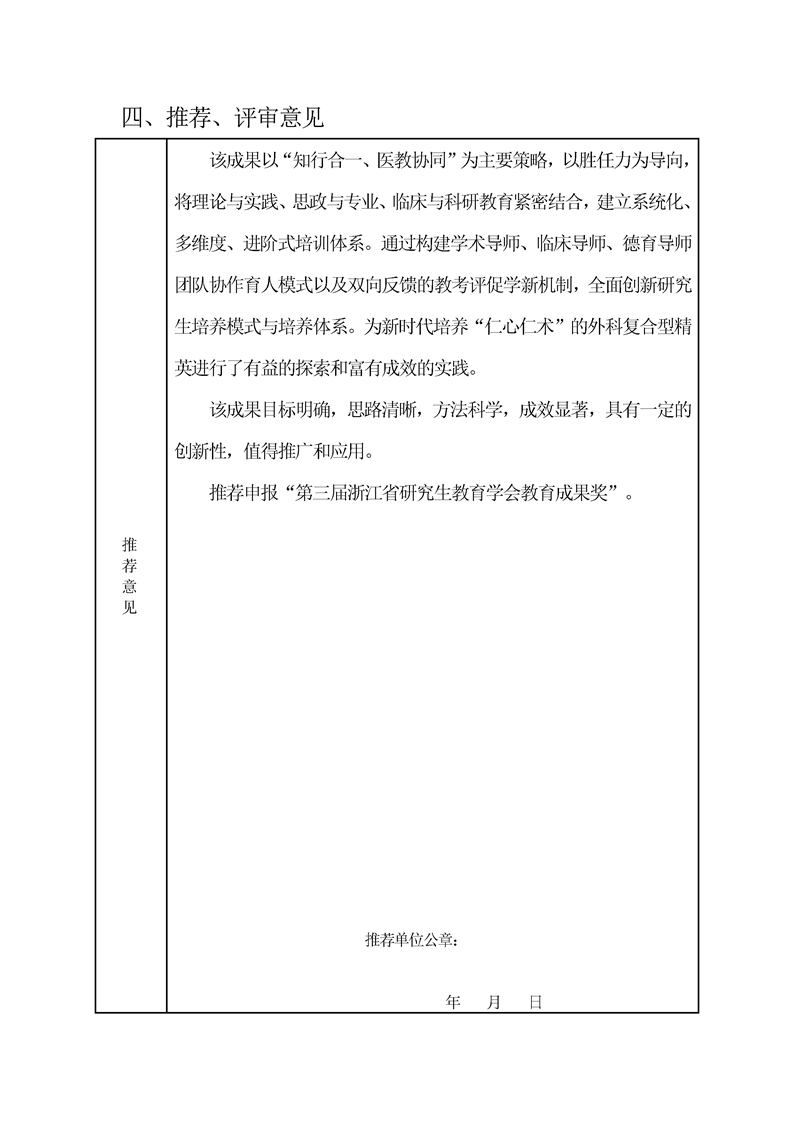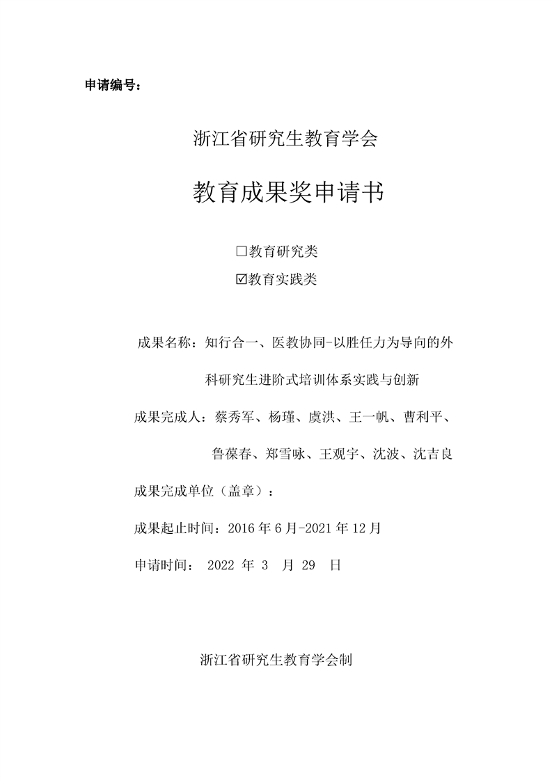浙江省研究生教育学会教育成果奖申请书