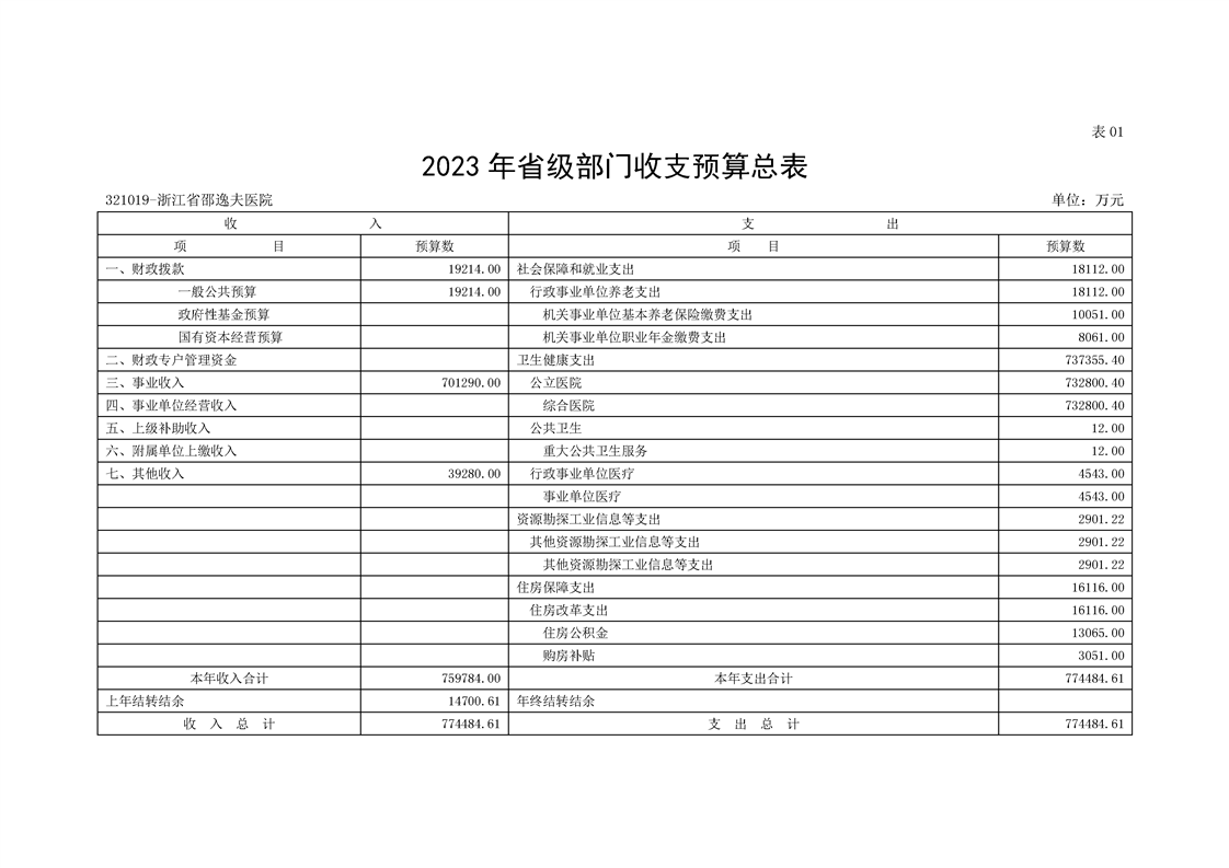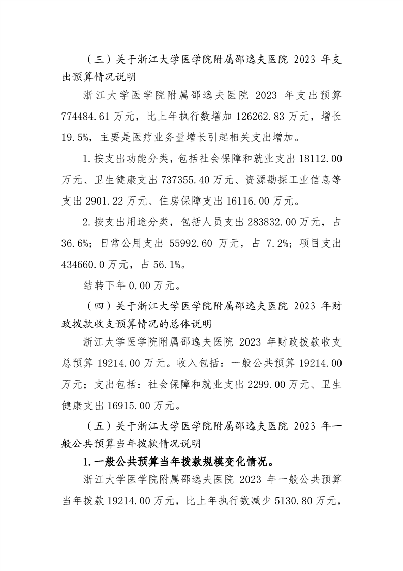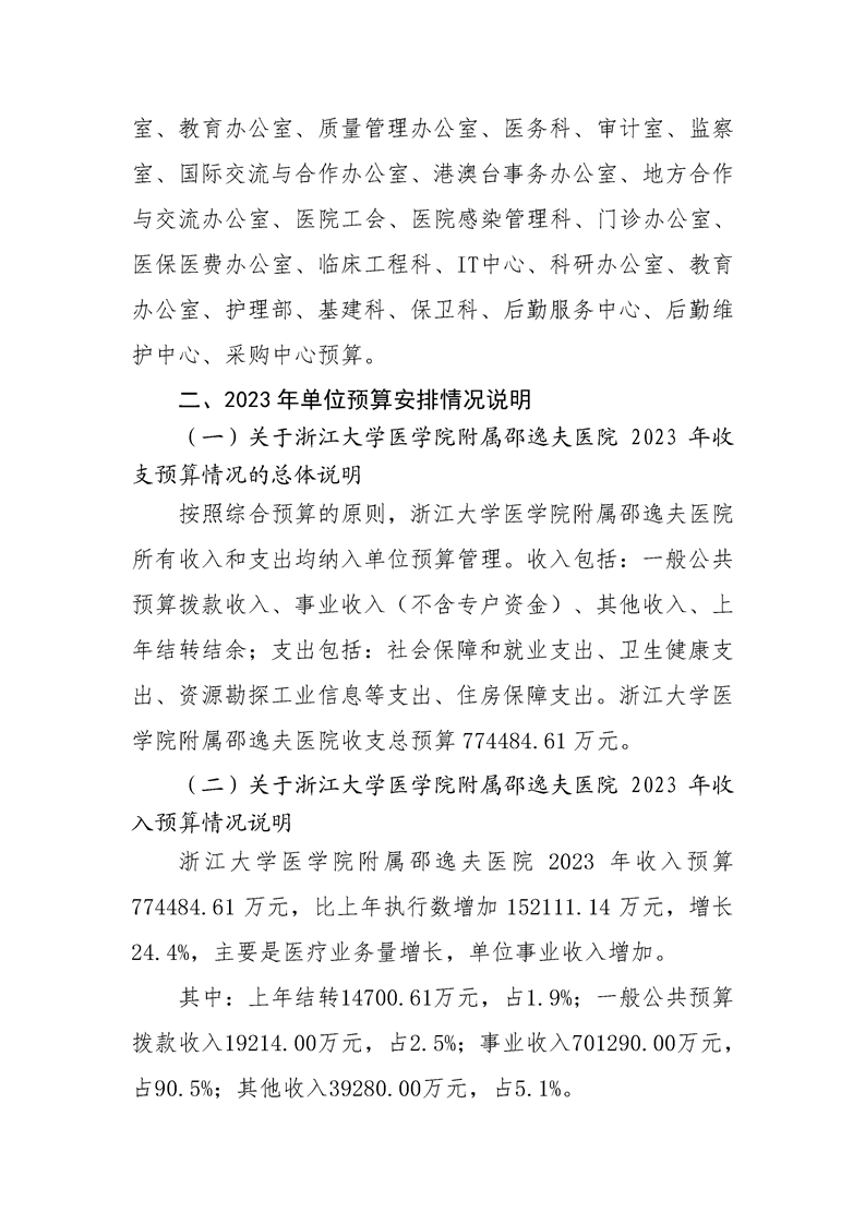 浙江大学医学院附属邵逸夫医院2023年单位预算公开