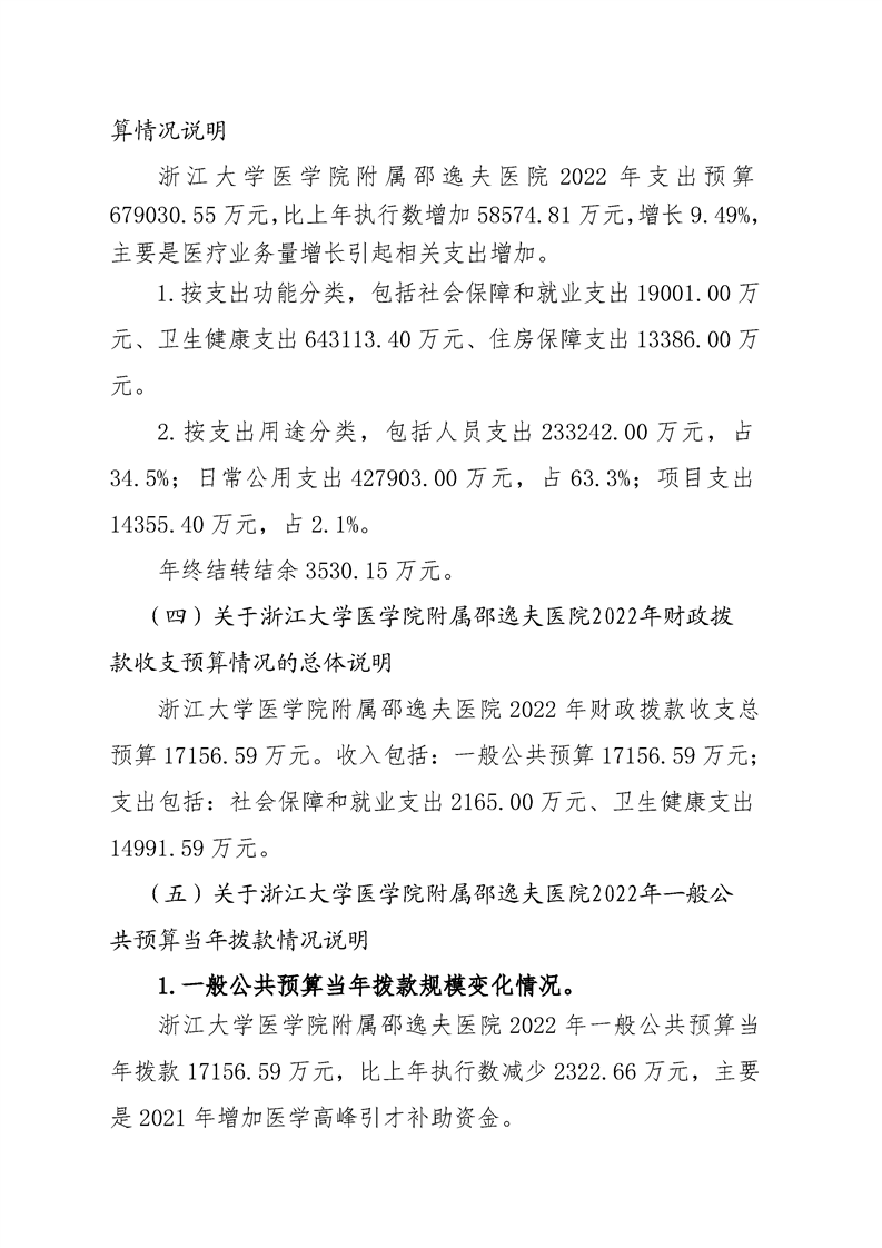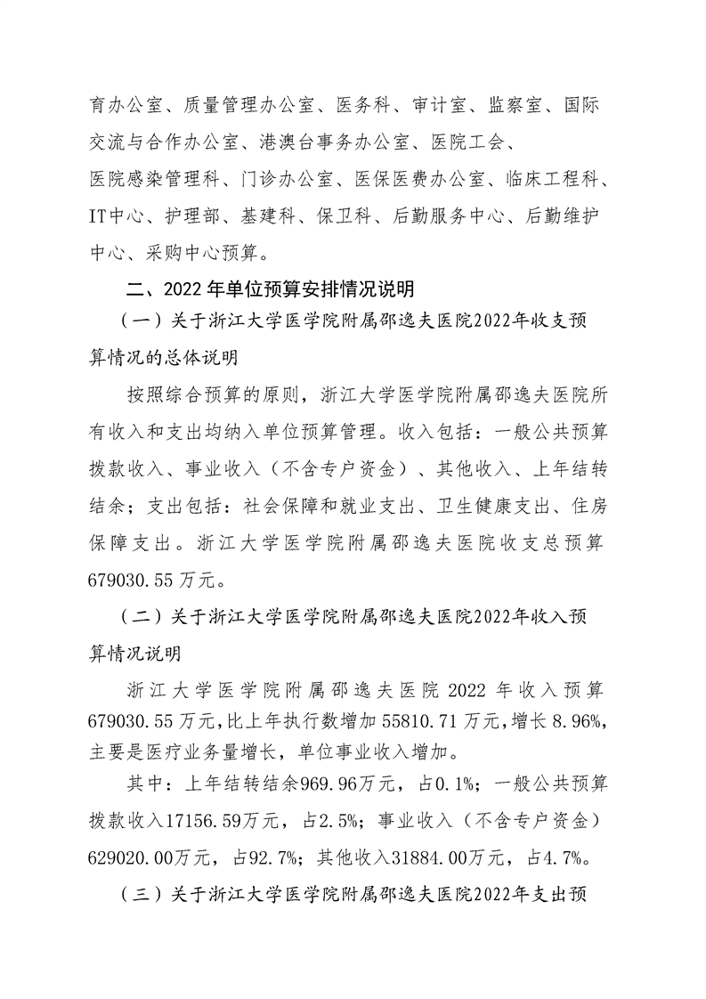 浙江大学医学院附属邵逸夫医院2022年预算公开